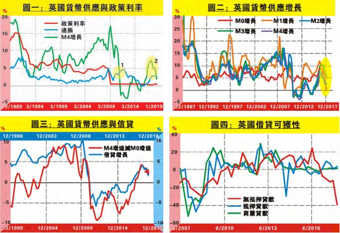 筆者相信,英國脫歐前景未明無疑是原因之一,細節一日未明,英倫銀行官員對前景仍較審慎,不過中線而言最重要還是觀察基本面的變化。圖一可見,英國政策利率與通脹及廣義貨幣供應M4增長一直同向,直至金融海嘯後,英倫銀行維持低官方利率下,三者才走勢各異。其中黃框1顯示,縱使通脹於2010年重拾升勢,但M4增長一直放緩,英國信貸市場正在萎縮,使英倫銀行維持官方利率不變。然而黃框2顯示,這情況近季再次出現,由此推測當局在未來加息步伐也難見加快。