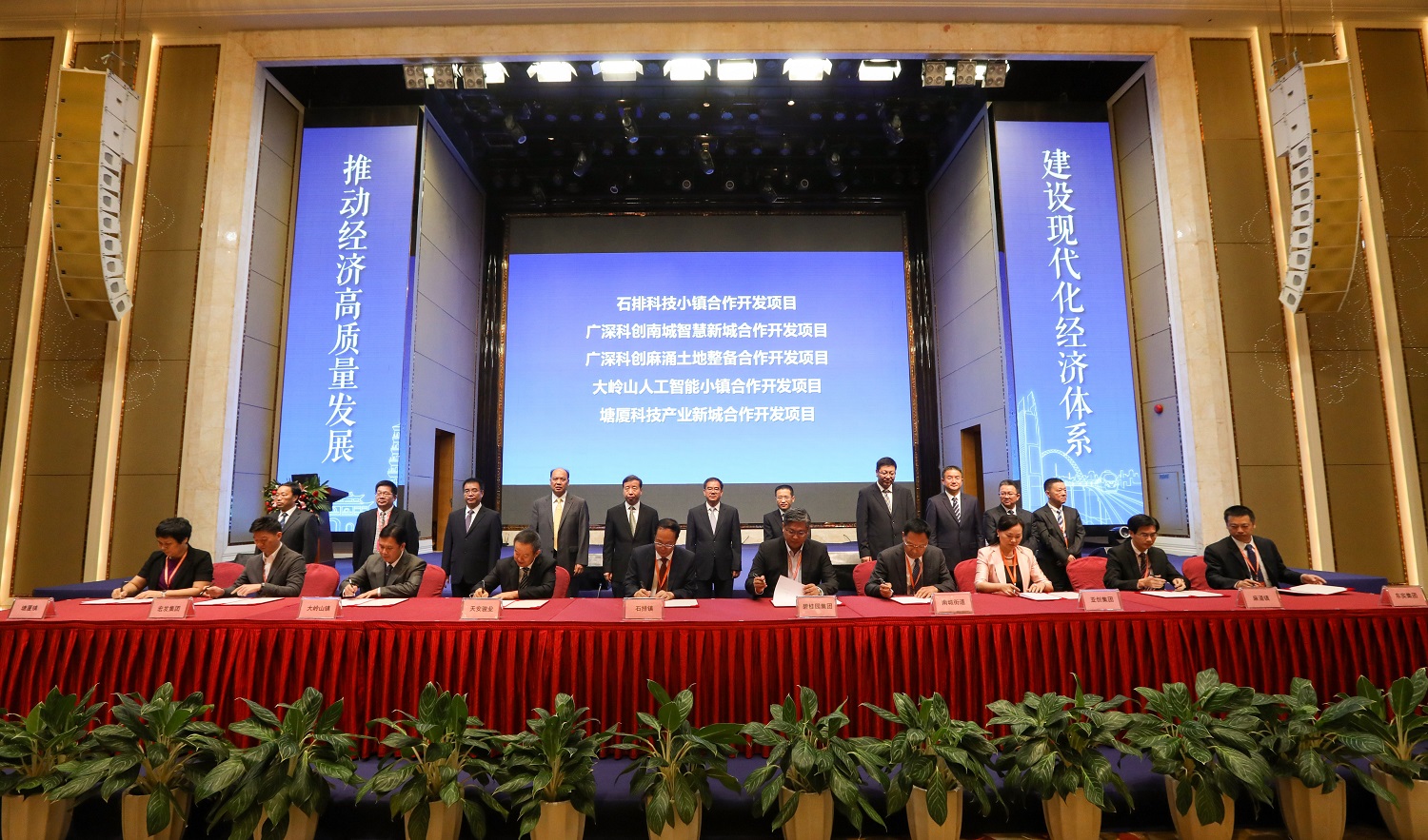 【香港商报网讯】记者冷运军报道:21日,东莞召开以“新时代、新东莞、新商机”为主题的招商推介会。瞄准东莞地处粤港澳大湾区腹地及强大的制造能力、产业配套,海内外商界巨贾约1200人齐聚东莞共谋商机。现场签约29个项目,协议投资超4000亿元,涉及高端智能制造产业、战略性新兴产业以及科技创新合作、城市更新合作等领域,不乏行业龙头企业,项目科技含量高、经济效益好。