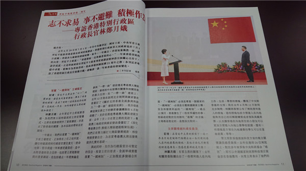 【香港商報訊】記者林駿強報道:去年6月29日至7月1日,中共中央總書記、國家主席、中央軍委主席習近平視察香港並發表系列重要講話,香港特別行政區第五屆政府也於7月1日就職,香港步入嶄新的發展時期。如今,一年過去,香港氣象煥然一新,欣欣向榮。習近平主席說,“香港發展一直牽動著我的心。”一年來香港發展的諸多成就,正是特區政府在習近平主席系列重要講話精神指引和關心支持下,穩中求進、積極有為所取得的。值此香港回歸祖國21周年之際,《紫荊》雜誌7月號,将刊出行政長官林鄭月娥的專訪,谈谈一年來香港的發展變化。