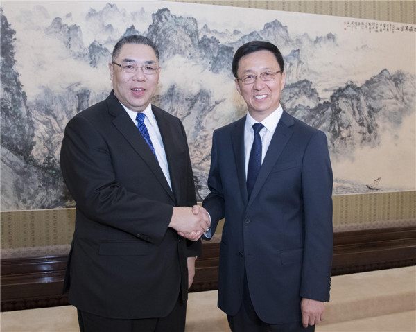 【香報商報网訊】中新社消息:中共中央政治局常委、國務院副總理韓正28日上午在中南海紫光閣會見澳門特別行政區行政長官崔世安,就《粵港澳大灣區發展規劃綱要》聽取意見和建議。