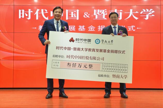 时代中国向暨南大学捐赠3000万元,左为时代中国董事局主席岑钊雄先生