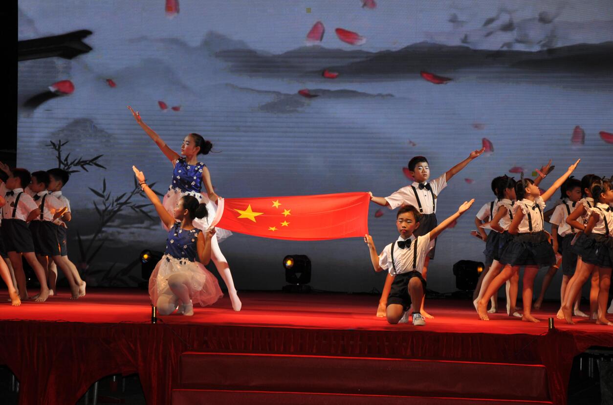 镇隆山顶小学的10多位小学生带来的朗诵与舞蹈《少年说》,严肃中不失可爱。