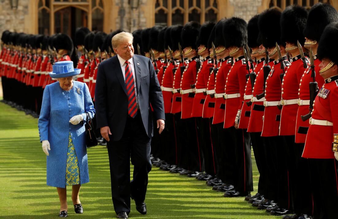 檢閱儀仗隊時,特朗普一度擋在女皇前面,女皇本來想走到他的左邊,但最終被迫走到他的右邊,才可勉強與他並排前行。路透社