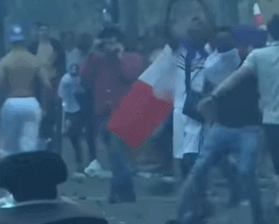 从现场拍摄的视频可以看到,当防暴警察进入现场时,闹事者穿着法国队球衣和戴着面罩攻击警察。