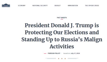 据环球网报道,“特朗普总统正在捍卫我们的选举,对抗俄罗斯的恶意行动。”