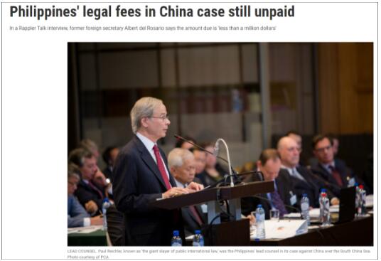 2016年7月,菲律宾前总统阿罗约的新闻发言人和办公厅主任、专栏作家里戈韦托·蒂格劳曾在菲媒《马尼拉时报》头版发表文章指出,菲律宾为南海仲裁案请律师,共花费了3000万美元。