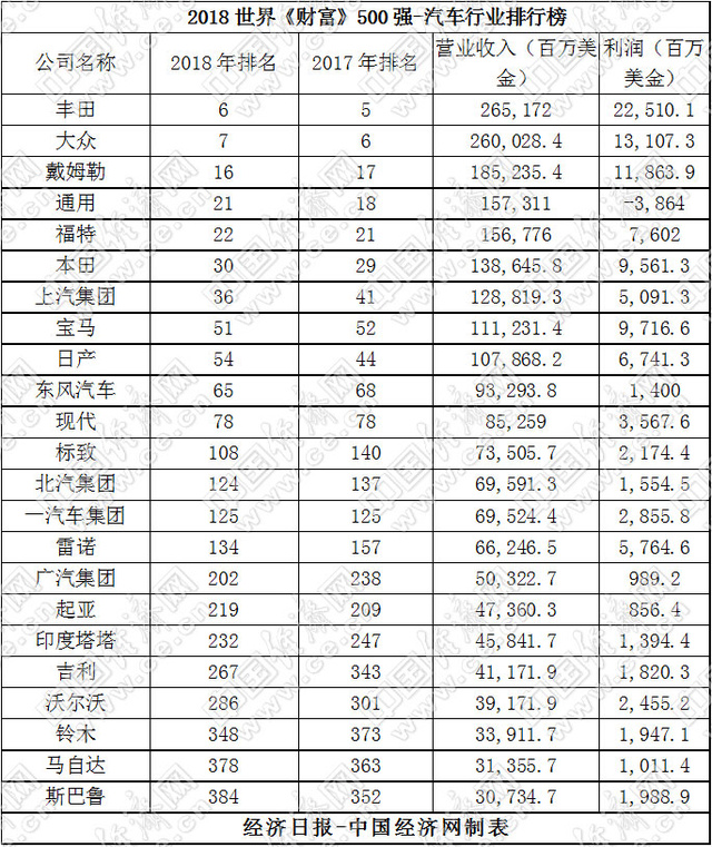 7月19日,《财富》杂志正式发布2018“世界500强”榜单。其中,上汽、东风、北汽、一汽、广汽和吉利等6家中国车企再次上榜,分列第36、65、124、125、202、267位,较2017年分别提升5、3、13、0、36和76位。
