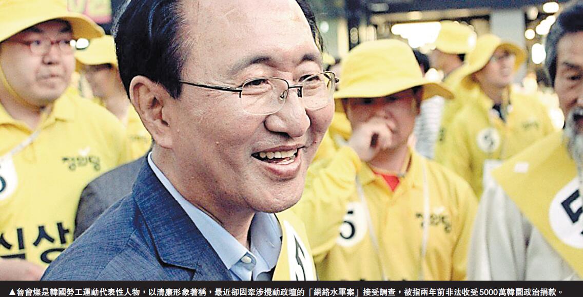 魯會燦一直以清廉形象示人,但早前被指涉嫌收受網絡輿論操控案核心疑犯「Druking」5000萬韓圜政治獻金,正在接受調查。