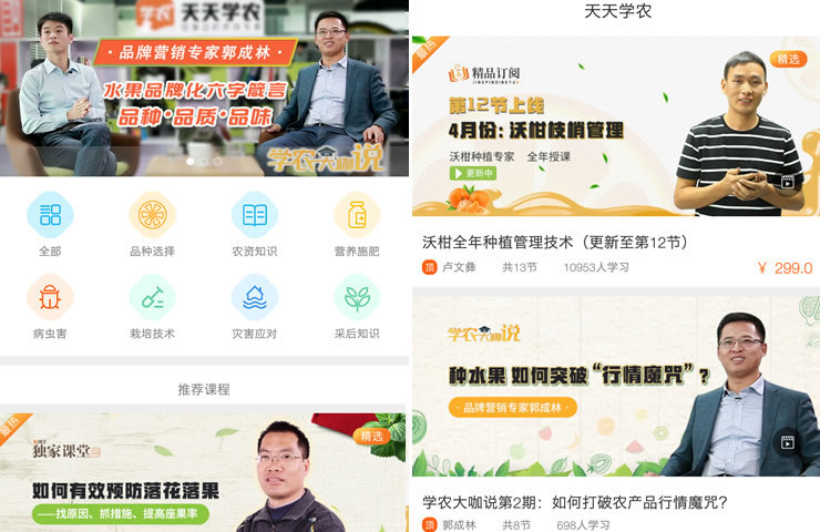 我们看到类似「天天学农」这样的创业项目被资本市场的认可。「天天学农」教授农技知识,涉及病害虫害、水肥农事管理等领域,内容由种植大户、农技站、农业院校的农技专家生产。其3月初上线了一个沃柑栽培的全年订阅课程,单价299元,现在已有超过1万人在线学习过。
