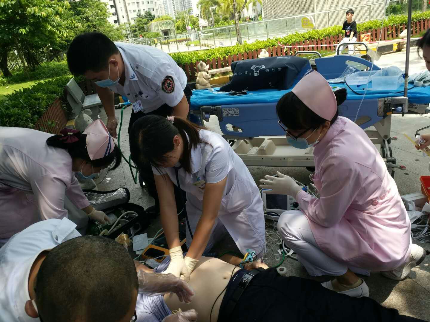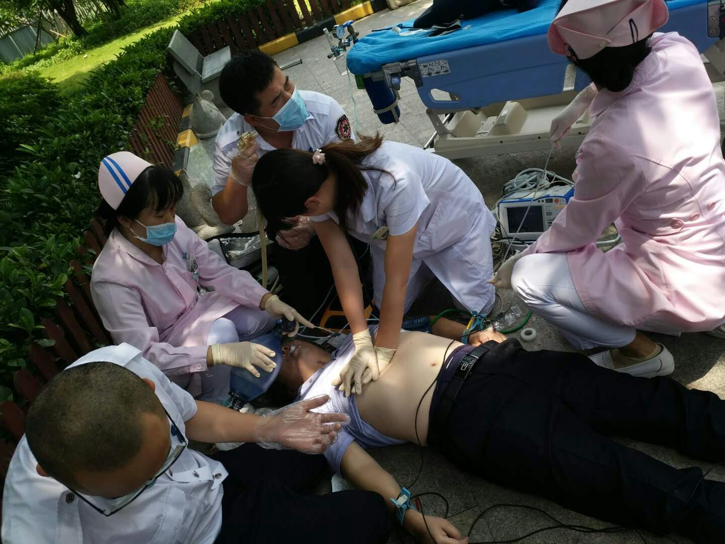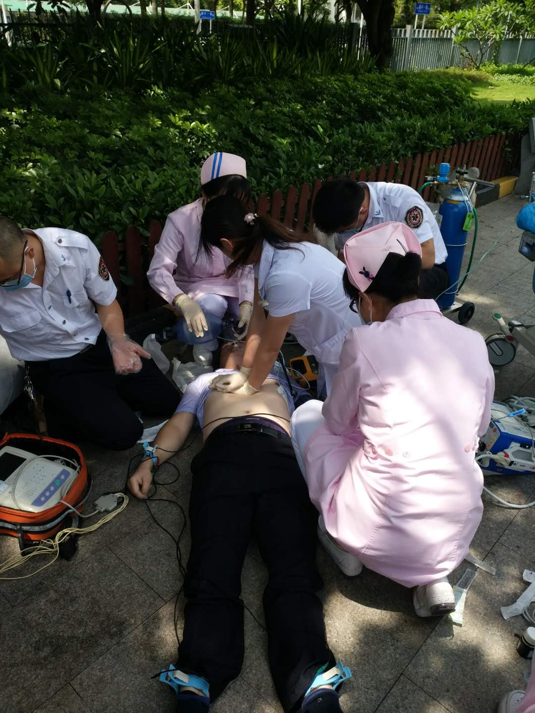 【香港商报网讯】记者林丽青、通讯员李梦园、曹海燕报道:7月22日上午,罗某带孙儿在儿童医院就诊时突发晕厥,医生护士发现患者是成人,第一时间拨打120请求支援,即刻现场对罗某进行了胸外按压、心肺复苏等抢救工作。北大深圳医院院前急救人员田辉医生与王彬护士在接到120指挥中心电话后迅速赶往现场进行抢救,在对患者进行用药、气管插管和呼吸机辅助治疗后,由于罗某出现室颤,现场医护人员同时对其进行了反复除颤。现场由初级生命支持升级转换为高级生命支持。