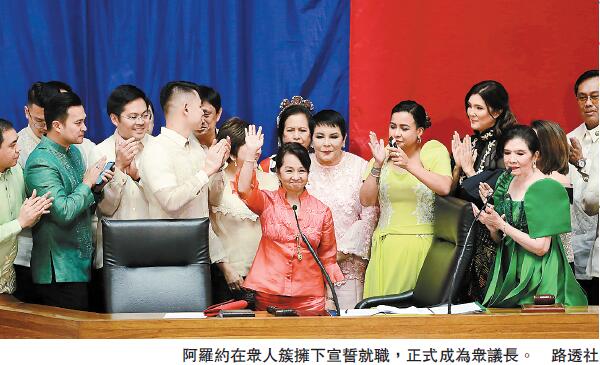 【香港商報网訊】菲律賓眾議院議長當地時間周一閃電換人,改由前總統阿羅約擔任。她也成為菲國史上首位女性眾議長,也是首位當上眾議長的卸任總統。