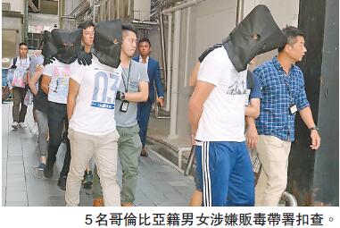 被捕4男1女均屬哥倫比亞籍(25至44歲),當中包括集團主腦及骨幹成員,3人持「行街紙」,2人持哥國護照,來港約1至2個月,他們涉嫌「販毒」罪名,全部正被扣留調查。警方表示,初步調查相信毒品是供應中上環娛樂場所,已活躍一段時間,與本港販毒集團並無聯繫,不排除專門售賣予遊客,現正追查其毒品來源及運港渠道。