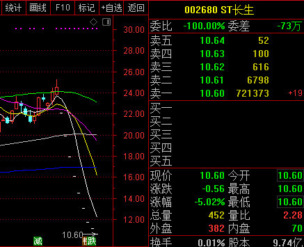 这是ST长生为连续第九个跌停板。截至发稿,跌停板封单仍超过70万手。