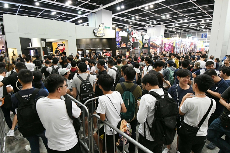動漫節開鑼大批市民等候入場掃貨。 記者 馮瀚文攝