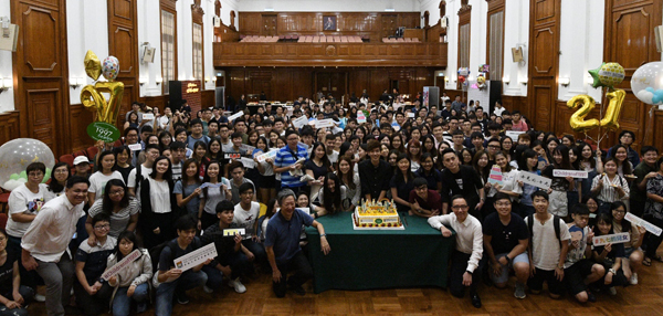 「九七的兒女」21歲生日會,梁卓偉(前右二)與參與研究計劃的年輕人聚首一堂。記者 馮俊文攝