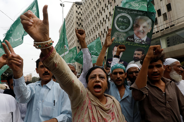 謝里夫派的支持者上街示威,認為選舉有舞弊情況,要求重新舉行大選。 路透社