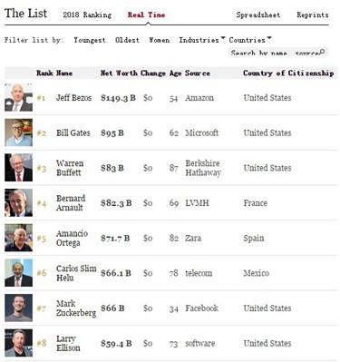在目前的福布斯实时富豪榜上,扎克伯格的身家为660亿美元,在福布斯实时富豪榜上排在第七位,已跌出了前五。