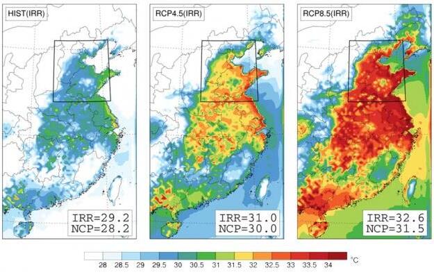 而其最新研究显示,在2070年至2100年间,中国北方平原的湿球温度会多次超过35度,除非温室气体排放显著减少。“中国北方平原会经历致命热浪,而那个致命关口取决于在户外非空调环境下作业的中国农民能够忍受多久”。
