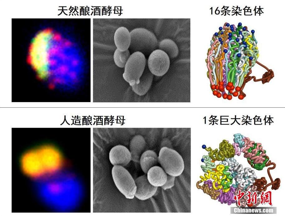 覃重軍在發布會上介紹說,研究團隊通過深入鑒定SY14的代謝、生理和繁殖功能及其染色體的三維結構發現,雖然人工創建的單條線型染色體的三維結構發生了巨大變化,但SY14酵母具有正常的細胞功能,即把16條染色體上的所有遺傳信息放在1條上,可以看到染色體結構發生巨大變化,但是細胞生長跟原來一模一樣,功能也幾乎都是一樣,意味着人工造出了一個簡約化的生命體。