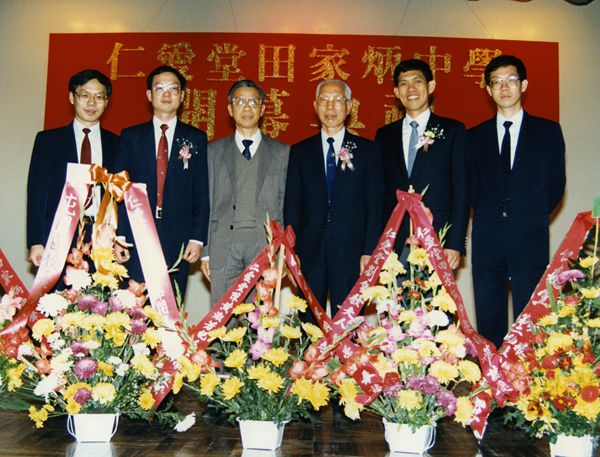 1987年仁愛堂田家炳中學開幕,是田家炳(右三)在港捐辦的第一所學校。