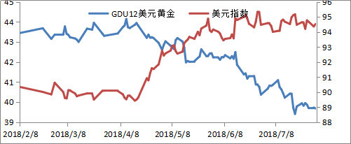 在美国经济向好主导全世界的背景下,美元的价值得到完全捍卫,美元的强势可见一般,美元和黄金目前都具有明显的避险功能,两者反向关系明显,负相关达-70%以上。美元强势黄金继续受到压制。当然贸易战理论上会增加对黄金的避险需求,但是在强势美元的背景下,贸易争端对黄金的吸引力远小于强势美元。整体上,美元继续维持强势,黄金大概率上弱势。交易上以做空美元黄金期货为主。