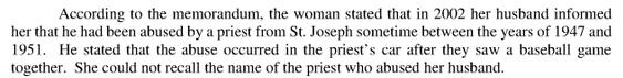 ▲一名女性称,她的丈夫在2002年告诉她,自己曾经在1947年至1951年之间遭到过性侵。
