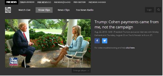 特朗普在采访中所说的发推讲过此事是在今年5月。当时他曾连发多条推文,承认给科恩“报销”了与美国艳星丹尼尔斯签署保密协议垫付的13万美元“封口费”。特朗普解释说,“这样的保密协议在名人和有钱人中很常见”,科恩之所以与丹尼尔斯签署保密协议,是为了让她停止散布与特朗普发生婚外情的谣言。他还特别强调科恩垫付的这笔钱并非出自竞选团队的律师费、与竞选团队没有任何关系,“封口费”也不是竞选基金里的钱。之后,这笔“封口费”是否涉嫌违反竞选法备受关注。