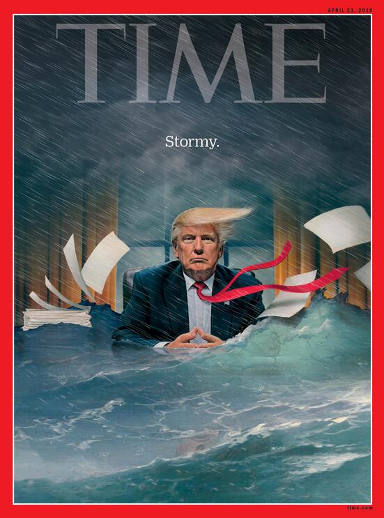 果然,在今年4月23日,特朗普前私人律师科恩的办公室被突袭检查时,奥·布莱恩的第二幅封面图就刊登在了那一期的《时代周刊》之上:封面中,特朗普虽稳坐泰山,但半个身子已经被水淹没。