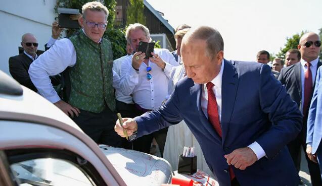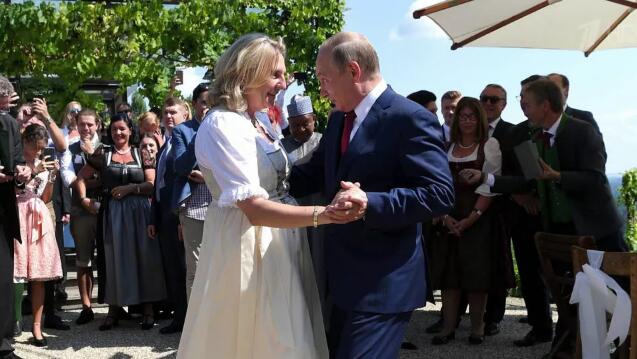 8月18日,普京出席了奥地利外长克奈斯尔的婚礼现场,用德语致辞,与新娘共舞,在临走时还在婚车上画了一颗心,写下祝福语并签名。奥地利媒体此前曾表示,普京参加克奈斯尔的婚礼就好像是接待了一位“老练的战术家”。