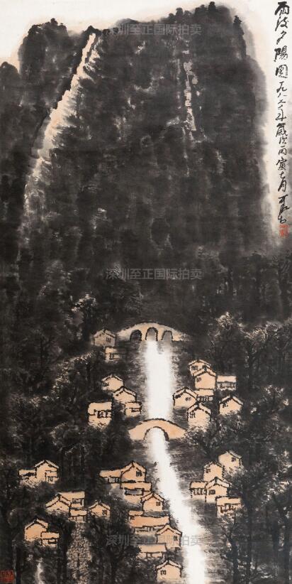 李可染作品《雨后夕阳图》