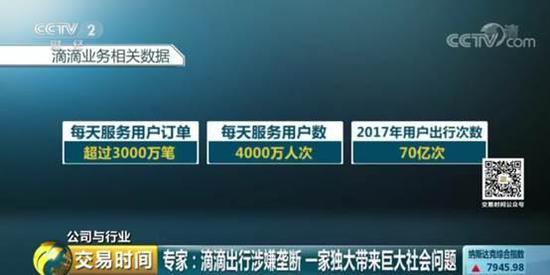 马勇 中银律师事务所高级合伙人:根据滴滴它现在披露的信息的话,它的市场份额应该在90%以上。然后根据相关的法律法规的话,我们认为这个已经达到了垄断的标准,应该由相关部门对它进行一个反垄断的调查。