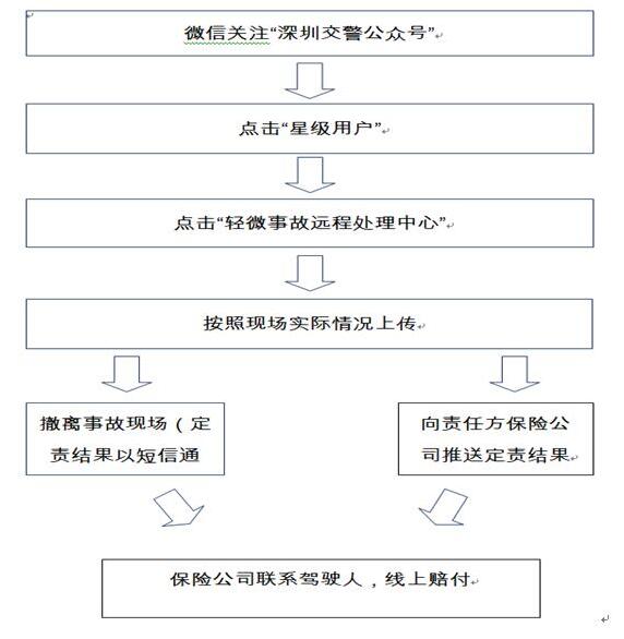 处理方式一:通过微信进入深圳交警远程事故处理中心处理轻微交通事故操作流程如下: