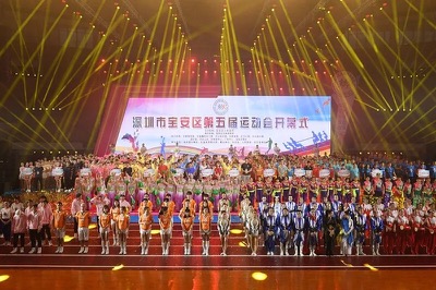 记者现场了解到,开幕式分两部分,上半部分由多个节目表演节目组成,《新姿·向往》《律动·青春》《幸福·共舞》《忠孝·木兰》等节目将先后上演,体现运动的力与美的杂技表演,街舞与花式篮球的结合表演,秧歌腰鼓的大串烧演绎,以及南派咏春、福永醒狮等精彩节目令人叹为观止。现场还播放了宝安区体育事业发展的VCR,分别介绍了宝安区积极落实全民健身国家战略,深化体育事业改革创新,建立健全公共体育服务体系,提高公共体育服务水平,促进体育产业发展的成果。下半部分14支代表队震撼入场,升国旗、奏国歌,宝安区第五届运动会盛大开幕。 活动历时一个半小时,最后以一场绚丽的灯光秀和宝安原创歌曲《丝路畅想》结束开幕式活动。