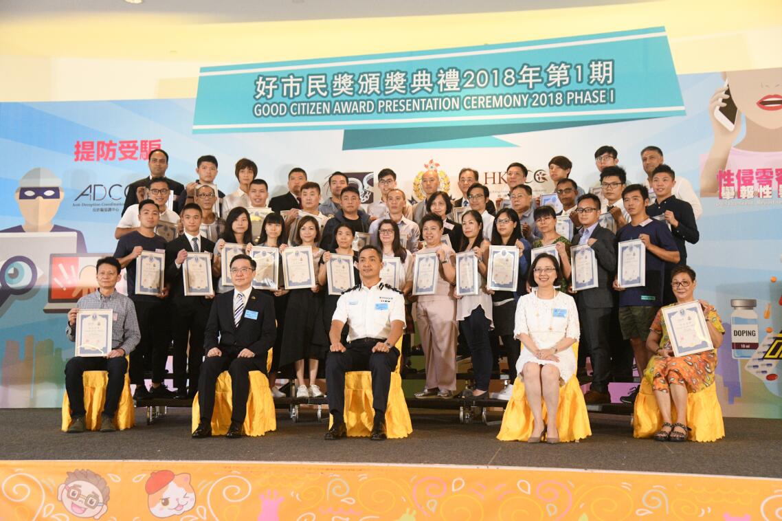 【香港商報网訊】記者周偉立報道:40名協助警方撲滅罪行的巿民昨日在荃灣愉景新城商場舉行的「好巿民獎頒獎典禮」上獲表揚。出席頒獎典禮的嘉賓均讚揚得獎者協助警方偵破罪案,展現見義勇為及守望相助的精神,是香港市民的模範,希望更多市民將這種英勇正義的行為薪火相傳、發揚光大。