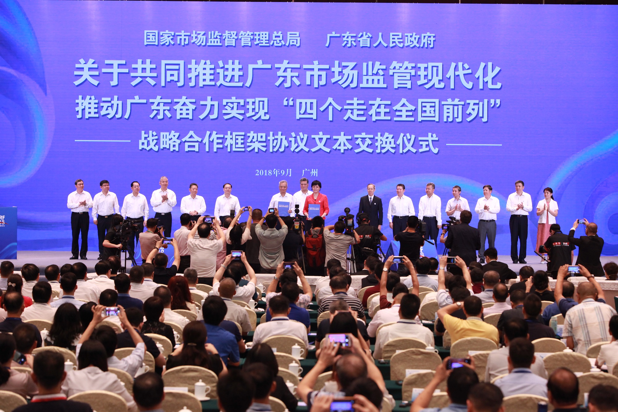 【香港商报网讯】记者 徐红 朱桦 通讯员 粤工商报道:9月6日,由国家市场监督管理总局和广东省人民政府联合主办的2018市场监督管理论坛在广州白云国际会议中心召开,广东省省长马兴瑞出席并见证《国家市场监督管理总局 广东省人民政府关于共同推进广东市场监管现代化 推动广东奋力实现“四个走在全国前列”战略合作框架协议》文本交换仪式,国家市场监督管理总局副局长甘霖、副省长陈良贤分别发表主旨演讲。