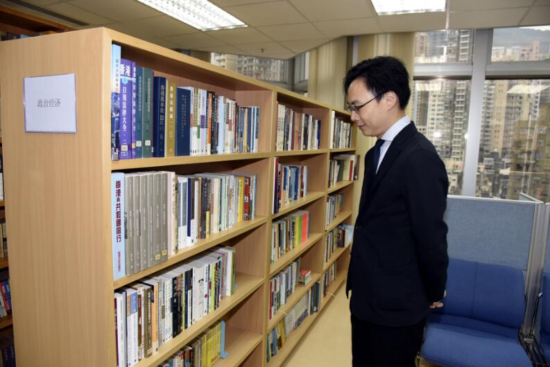 来宾参观我办图书室。(图片来源:中央政府驻港联络办)