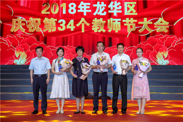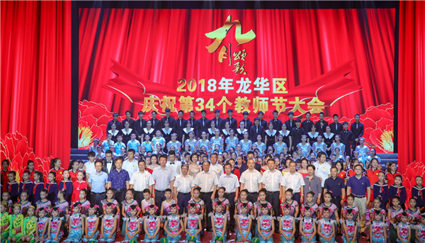 【香港商报网讯】 记者王娜、通讯员郑钰、王文涛报道:9月10日下午,龙华区教育局在龙华会堂隆重召开了“九月颂歌”庆祝第34个教师节大会。龙华区委副书记、区长陈清在大会作致辞,龙华区人大常委会主任谢晓东、区政协主席钟荫腾以及区领导苗宁礼、黄启键、马里,市教育局副巡视员赖群阳、市教科院副院长李桂娟等领导、嘉宾出席了活动。会上对先进优秀集体个人等进行颁奖。