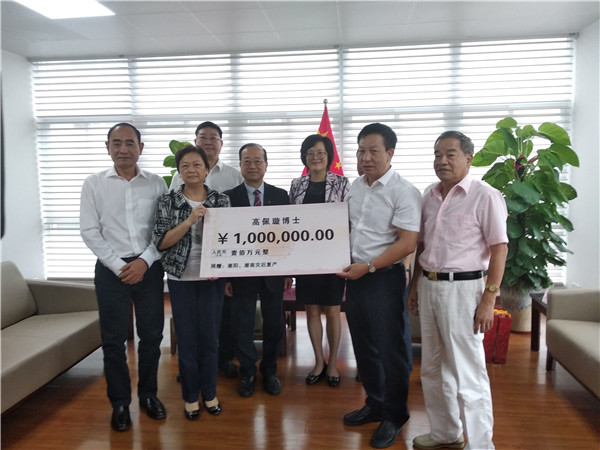 全国政协委员、香港潮属社团总会首席会长高佩璇表示:得知家乡受灾严重,十分关注,这次以香港意得集团有限公司名义捐款人民币100万元,尽尽自己的一点心意,希望用有限的钱额,表达无限的爱心,帮助受灾地区的生产生活早日走上正轨。