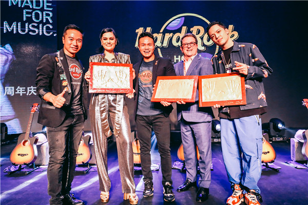 当天,Jessie J作为特别嘉宾,出席了深圳硬石酒店1周年庆典仪式,其中包括VIP粉丝见面会,明星单品赠送仪式以及最著名的硬石式“砸吉他”仪式。Jessie J作为《歌手》节目后最炙手可热的国际巨星,对于此次周年庆活动表现了大力的支持以及对品牌的无限热爱,并慷慨赠送了她在《歌手》节目中所穿的战袍。深圳硬石酒店的业主集团——观澜湖集团主席兼行政总裁朱鼎健博士与副主席朱鼎耀先生,以及珠三角地区多位业内高层与品牌挚友与深圳硬石共同见证并出席一周年庆典,Jessie J在现场向观澜湖集团赠送了签名吉他,并留下了金色手印。