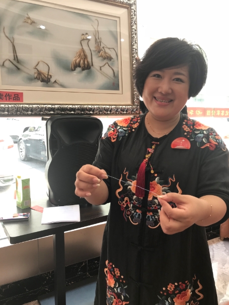 孙艳玲是黑龙江牡丹江人,她也成为家乡的义务推介使者,以满绣为媒,致力搭建黑龙江省与广东省企业合作发展、经济友好往来的桥梁。