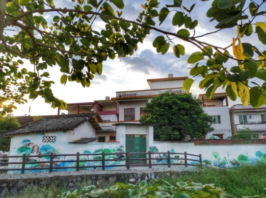 暮色降临,采风团来到了韶关首届“中国农民丰收节”开幕式的主会场和村。刚一下车,一条清澈见底的小河、一座造型优美的石拱桥便吸引着“大V”、老记小编们一阵叫好声。走在洁净的村道上,两边沿路是一溜的宫粉紫荆树。道路两旁原本平平无奇的旧房子,绘上了五彩斑斓的美丽图案,小村庄已从早年的脏乱破华丽转身为一座具有艺术底蕴的优美古村落。