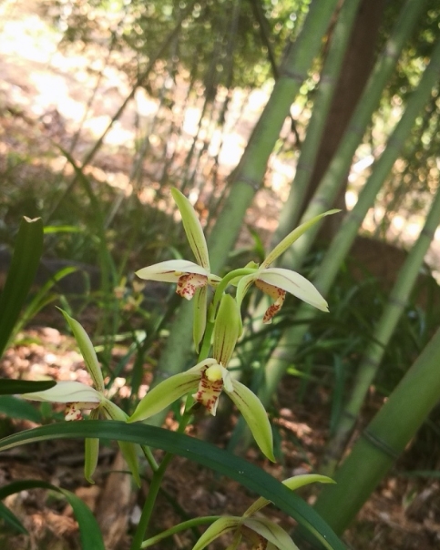 当采风团冒着烈日走入位于山间的野外生态兰花种植观赏区时,潺潺的流水声开始伴随着蜿蜒的山间小路不绝于耳,让人暑气尽消。一株株墨绿的幽兰依树而立,在阴凉的林间畅意生长。静坐于树下,空谷寂静,习习山风不时掠过,让片片兰叶此起彼伏,摇曳着深邃的寂寥。一阵阵幽香不时浮上鼻尖,令人心旷神怡,仿佛已远离纷扰的尘世。