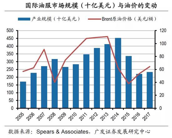 根据Spears&Associates数据显示,国际油服市场规模在最近一个周期高峰时期2014年达到4528亿美元,随着油价下跌市场规模一路缩水,2016年降至2213亿美元,缩水超过一半,之后由于原油价格的逐渐升高,油服市场也呈现出底部复苏的态势。