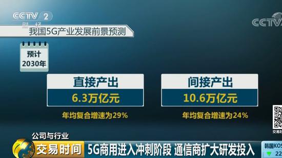 到2030年5G带动的直接产出和间接产出将分别达到6.3万亿和10.6万亿元,两者年均复合增速分别为29%和24%。