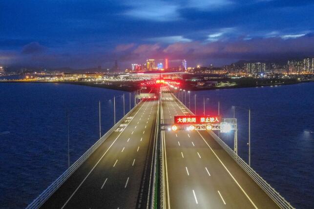 港珠澳大桥在“山竹”过境时供电稳定正常,大桥当晚照常亮灯。