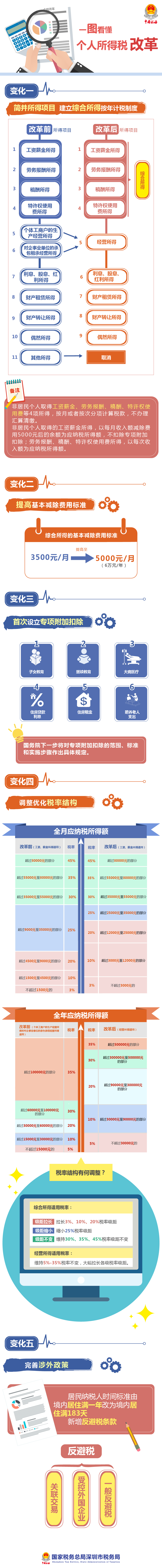 此次个人所得税法改革涉及范围广、力度大,从总体上看主要涵盖五大内容: