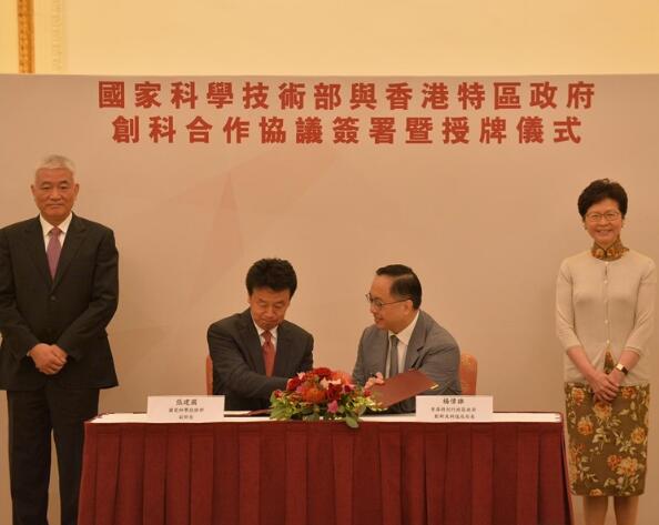【香港商報网訊】記者林駿強報道:特區政府與國家科學技術部今日簽署《內地與香港關於加強創新科技合作的安排》(下称《安排》)及《科學技術部與香港特別行政區政府創新及科技局關於開展聯合資助研發項目的協議》(下称《協議》)。簽署儀式於禮賓府進行,由行政長官林鄭月娥及到訪的國家科技部部長王志剛見證。林郑表示,与科技部签署合作协议,令本港与内地的科研合作踏上全新台阶。