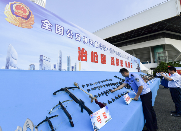 根据公安部统一部署,9月20日上午,广东省打击整治枪爆违法犯罪省级部门联席会议组织广东省公安机关开展了以“治枪爆、除隐患、保民安”为主题的集中统一销毁非法枪爆物品活动,并在韶关钢铁厂对全省收缴的各类非法枪支、管制刀具进行集中统一销毁。