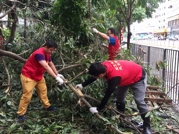 在台风“山竹”来临之前,绿化所所长赖向华召集工作人员及绿化管养公司研究部署抗风工作,并前往辖区内的每一条道路、每一个边坡检查,发现安全隐患的树木立即安排加固或修剪。随着台风“山竹”的步步紧逼,赖向华日夜巡逻,放弃了回家休息和陪伴家人的时间,一直在风雨里默默守护。16日下午,超强台风登陆,街道遭受到暴风雨侵害,辖区内主次干道及人行道均不同程度受堵。期间,赖向华不畏风雨,逆风而上,迅速组织应急专业人员对倒伏树木进行紧急清障,他在现场既是指挥员,又是战斗员,与同事们一起动手砍枝清路。