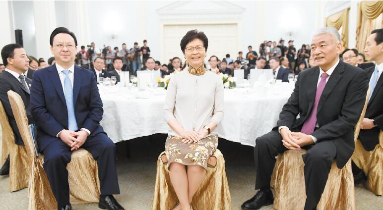 林鄭月娥致辭表示,在當今科網、科技盛行的時代,發展創新科技,對以創科驅動經濟發展、改善民生,至關重要。她回顧特區政府過去一年推動香港創新科技的工作,感受是「振奮」和「鼓舞」,「而『鼓舞』主要是來自中央對香港創科發展的支持」。